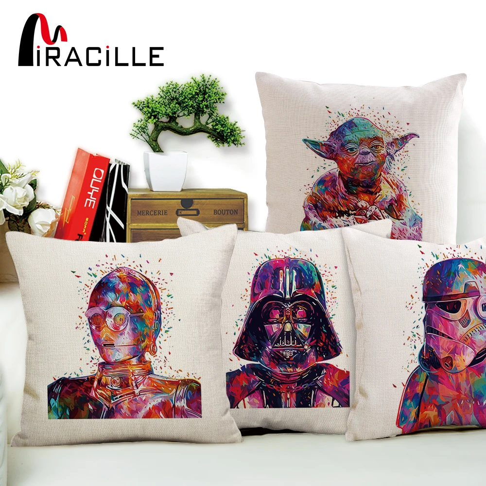 Promo Offer Miracille Acuarela Guerra de las Galaxias Impreso Throw Almohada Cojín Silla de Oficina Asiento de Dibujos Animados Funda de Cojín Textiles Para El Hogar