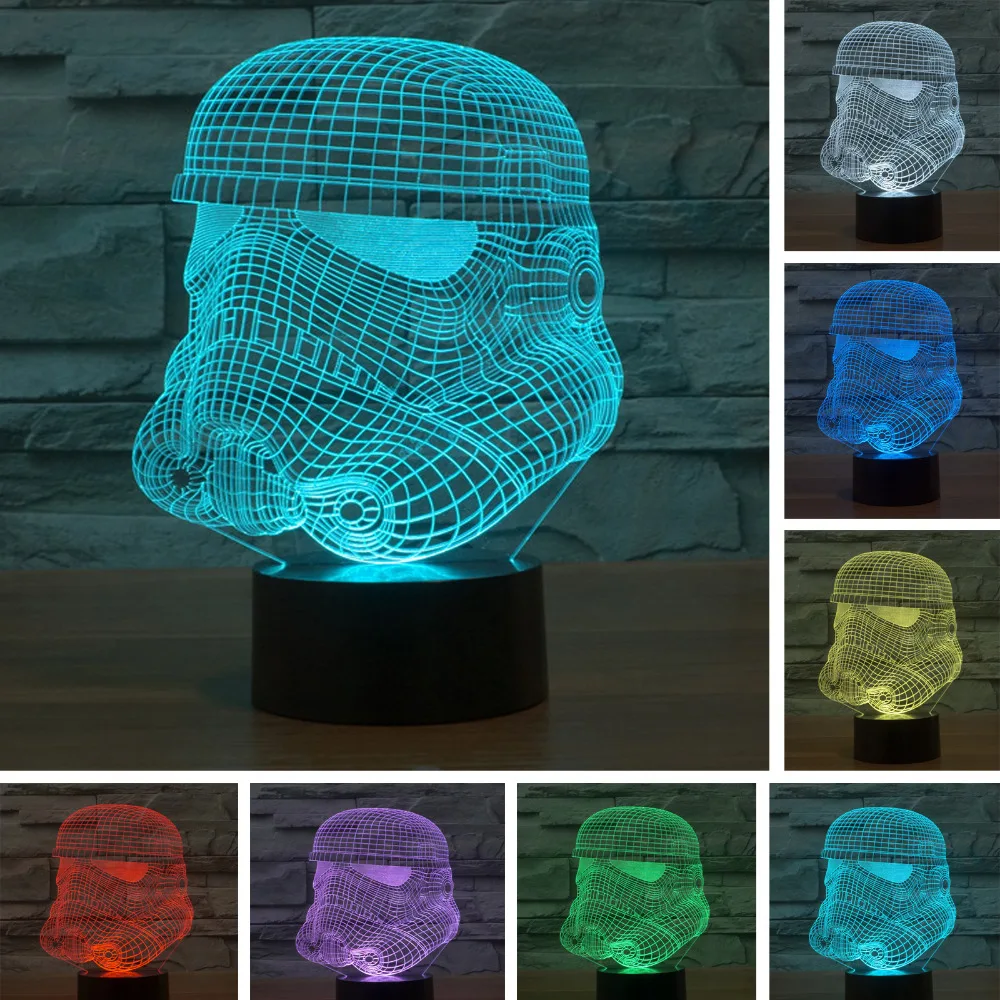 Big Discount Creativo Star Wars blanco Guerrero Acrílico 3D lámpara de ilusión, fuerza Clon colorido gradiente visual 3D LED nightlight Regalos de Cumpleaños