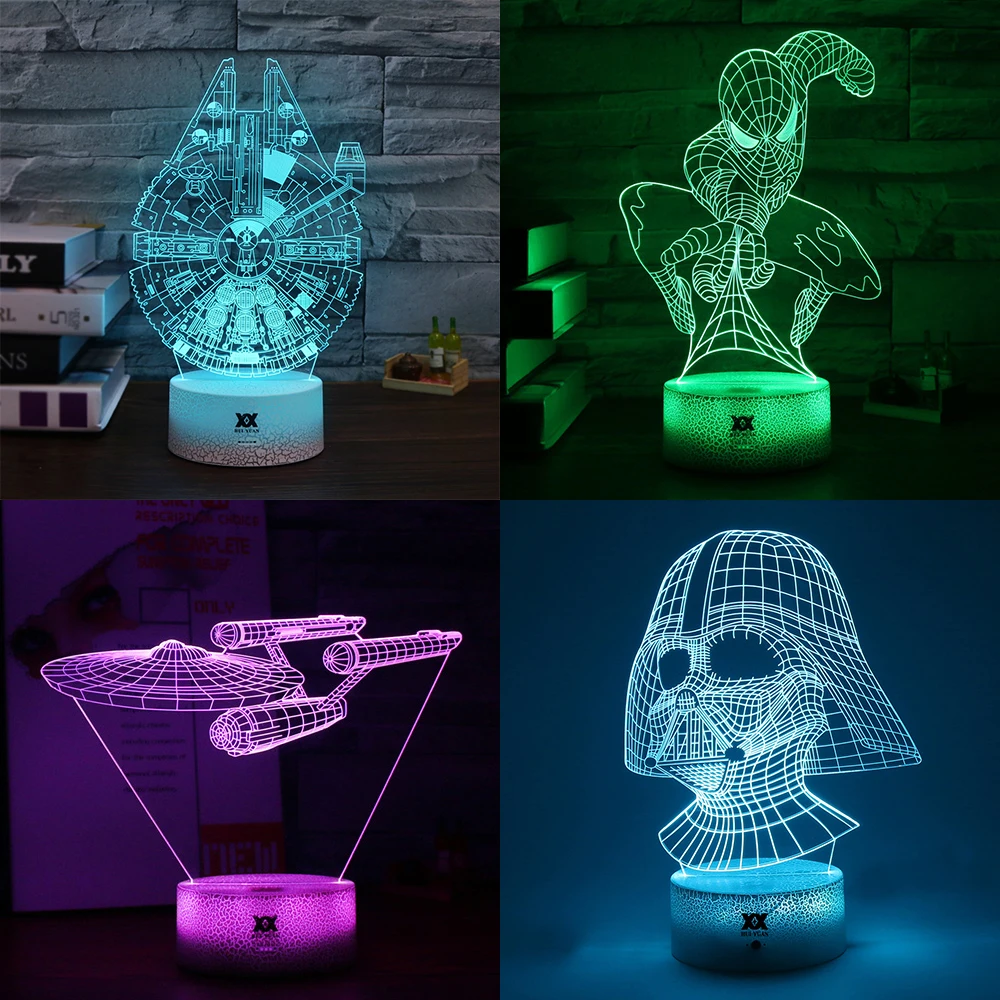 Good Star Wars Darth Vader 3D Lámpara de La Estrella de La Muerte Millennium Falcon Spider-man Star Trek Acorazado Luz de La Noche Decoración de La Mesa lámpara offers