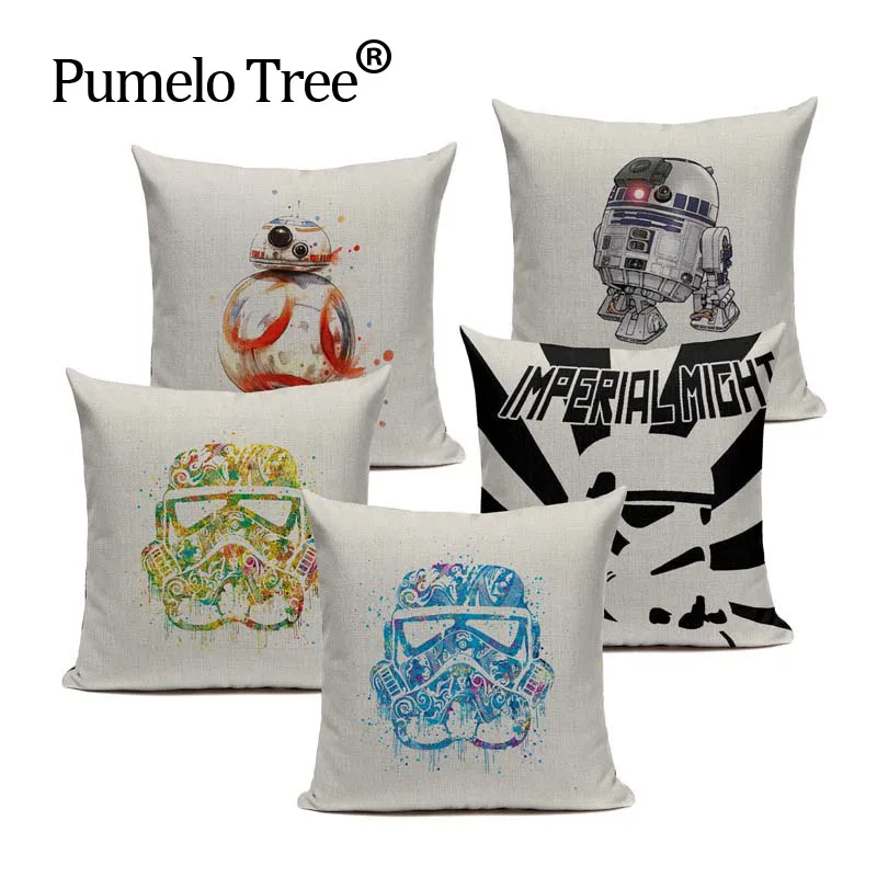 SALE De Dibujos Animados estadounidense Imperial Stormtrooper de Star wars almohada Acuarela Azul Negro almohadas cojines de Algodón de Lino Negro Knight soldado