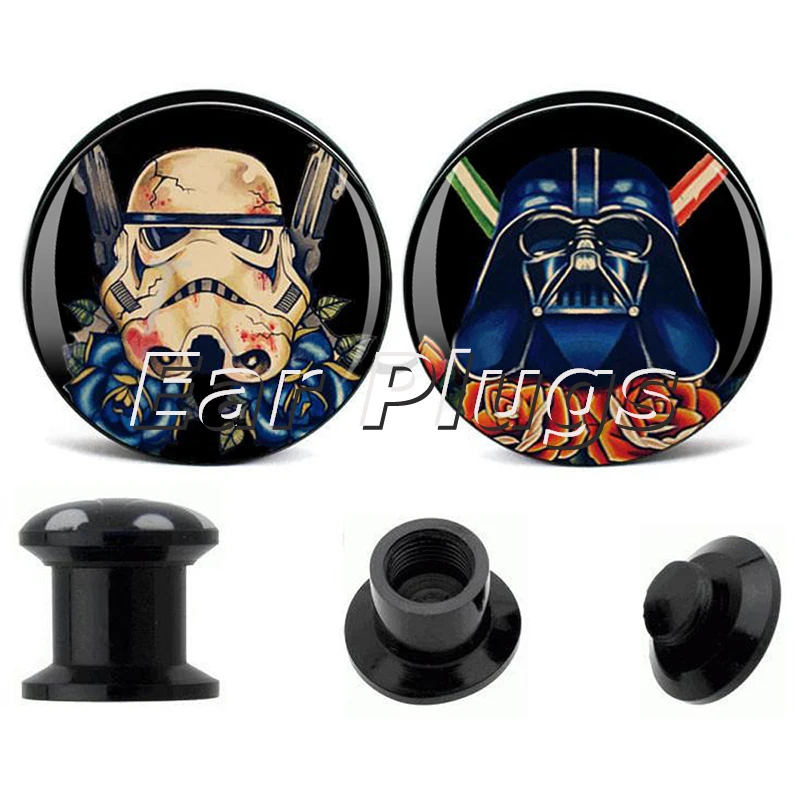 Good 1 par Star Wars Stormtrooper Vader calibres tapón del oído tornillo de acrílico negro fit ear plug flesh tunnel body piercing joyería offers